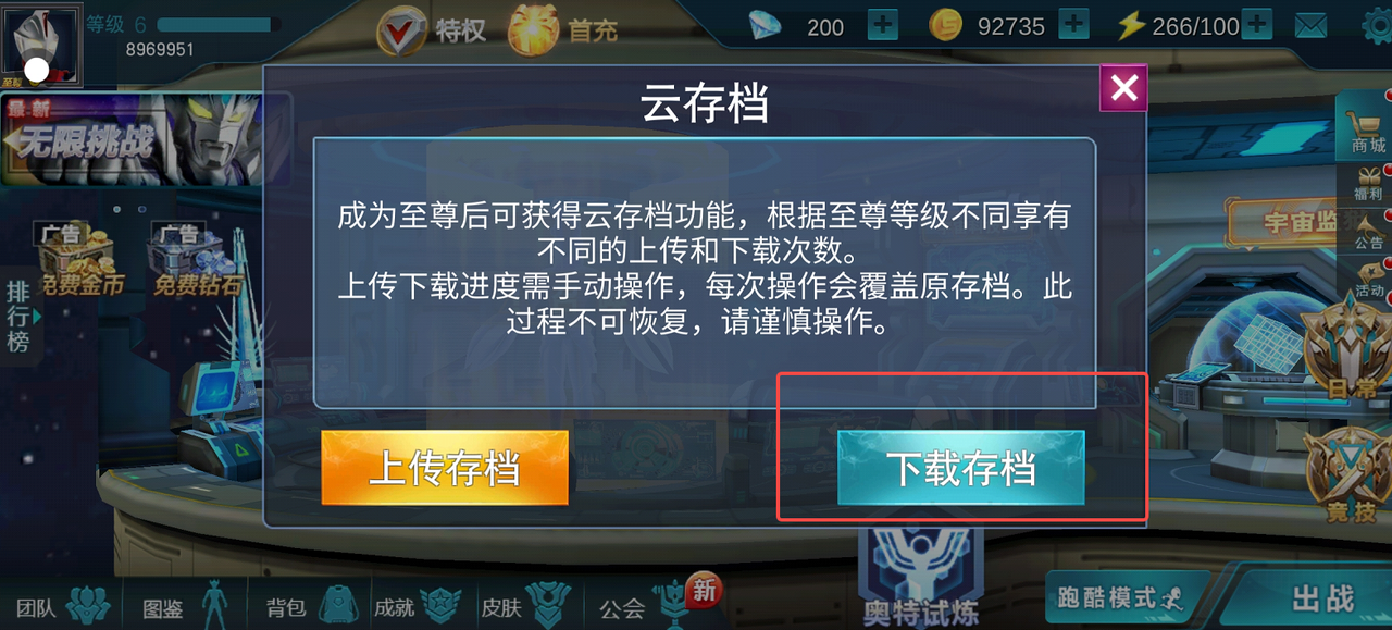 游戏内点击右上角【设置】-【云存档】-下载存档