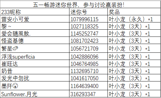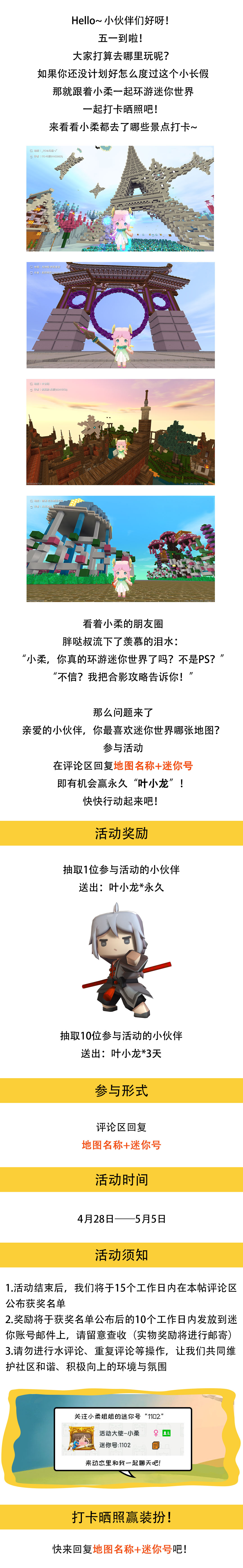 【已开奖】五一畅游迷你世界,参与讨论赢装扮!
