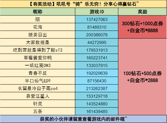 4. 缺少平台或ID信息导致无法发放奖励,将视为放弃领奖。