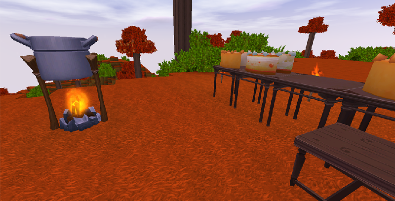 冒险家好,我是胖哒叔!今天一大早我就起身准备挖矿,在路上的时候突然闻到食物的味道,走近一看,一排长桌上放着不少食物和食材,桌子旁边还有一个铁锅,里面好像还在煮着什么东西...