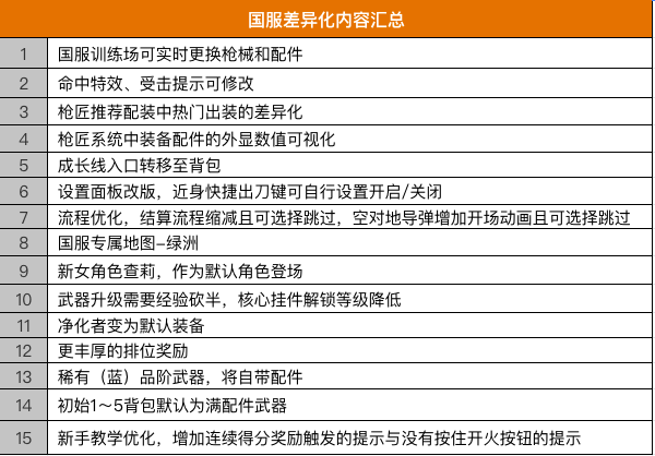 本次分享就到这里了,最后为战士们送上本次国服差异化内容汇总表: