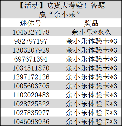 【已开奖】吃货大考验!答题赢“余小乐”!