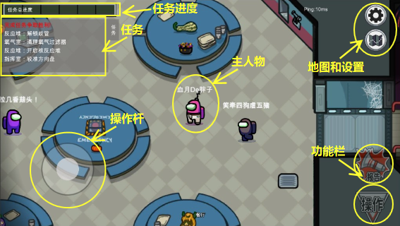 船员需要做任务将任务进度条填满,而内鬼需要杀掉其他船员来夺取胜利。如果发现了死人可以报告来进入讨论页面
