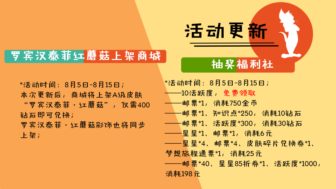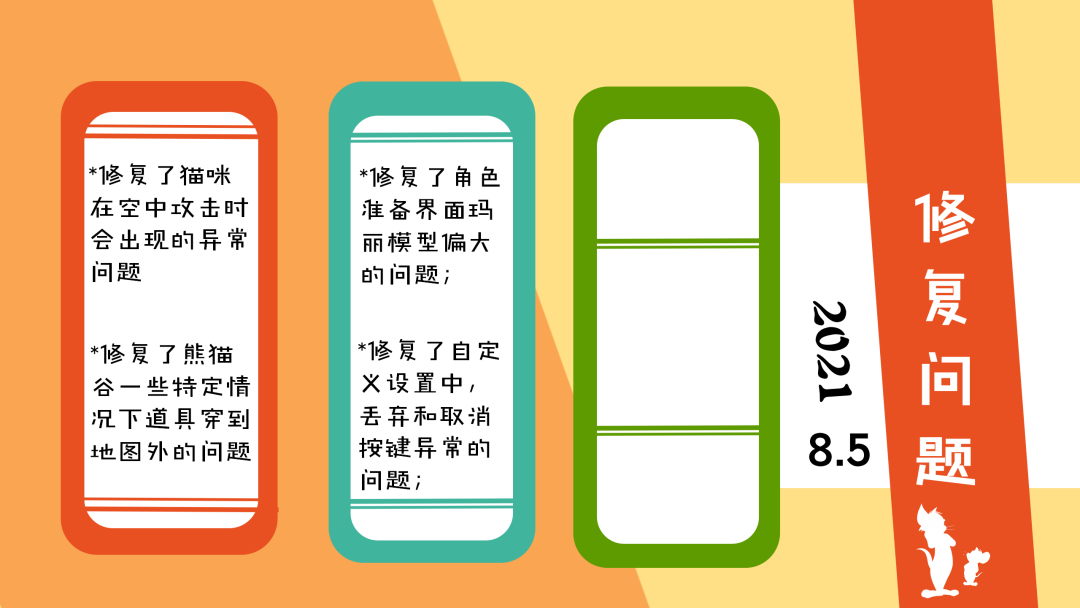 以上就是本周(8月5日)更新维护的全部内容,感谢小伙伴们对于《猫和老鼠》手游的支持和喜爱,愿欢乐永远陪伴大家左右!