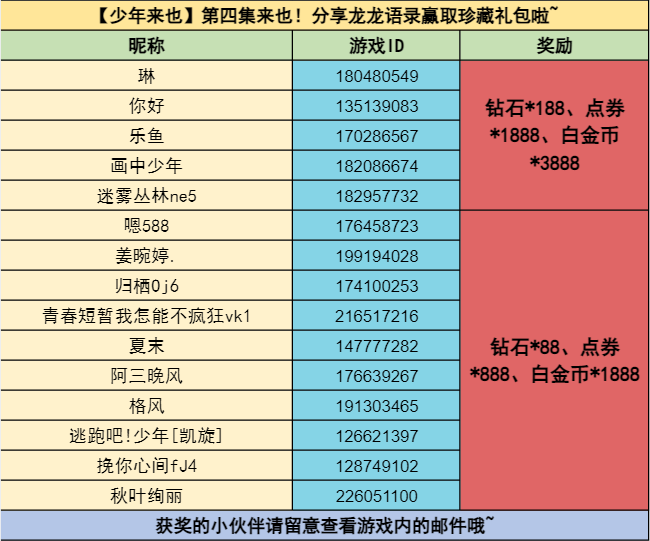 4.缺少平台或ID信息导致无法发放奖励,将视为放弃领奖。