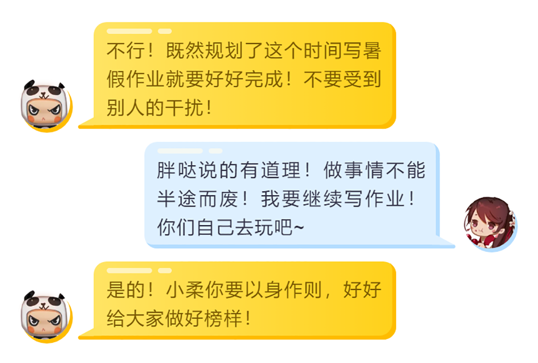 暑假已经过半!!!时间不多啦~作业记得写起来哈!千万别和小柔姐姐一样容易被“熊孩子”耽误了时间,胖哒的话是对的,制定好的时间规划,就要按时完成,谢谢胖哒的提醒,小柔姐姐才能准时完成规划。