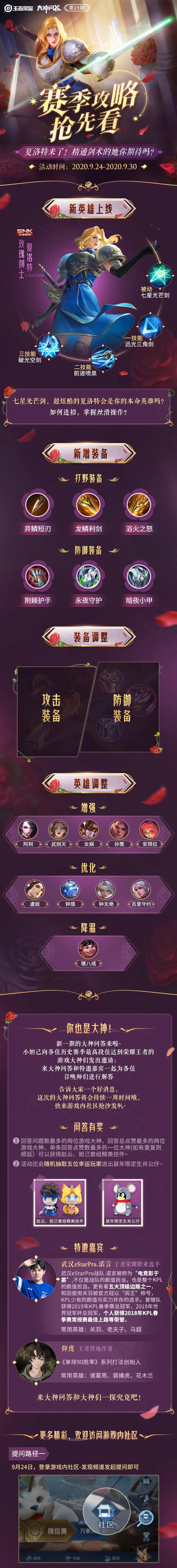玫瑰剑士夏洛特,是峡谷中第四位SNK正版授权英雄,英气逼人的夏洛特和热情的不知火舞、善良的娜可露露、冷静的橘右京相遇啦!SNK四英雄峡谷集结,等待召唤师前来哦!