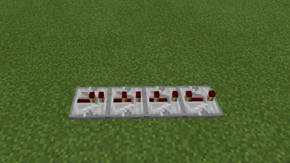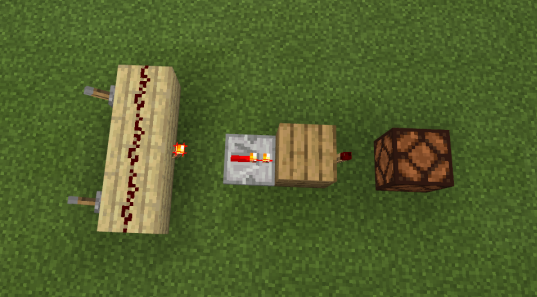 3、两个粘性活塞、一个白桦木板和三个打开状态的拉杆如下图摆放,请问最少拉动拉杆几次可以将白桦木板移动到与图中红石灯相对的位置?