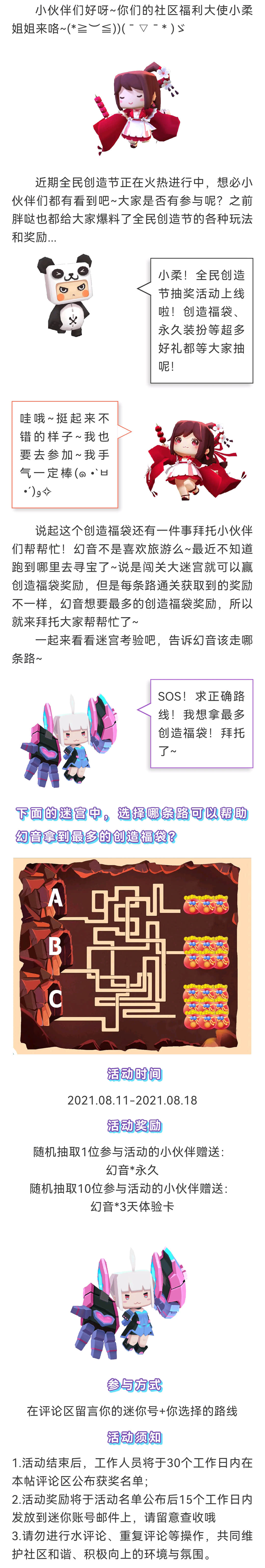小伙伴找到最多奖励的的迷宫路线了吗?一定要留言告诉小柔姐姐哦~小柔姐姐好去告诉幻音!幻音能不能拿到最多的创造福袋奖励就看大家给不给力了!