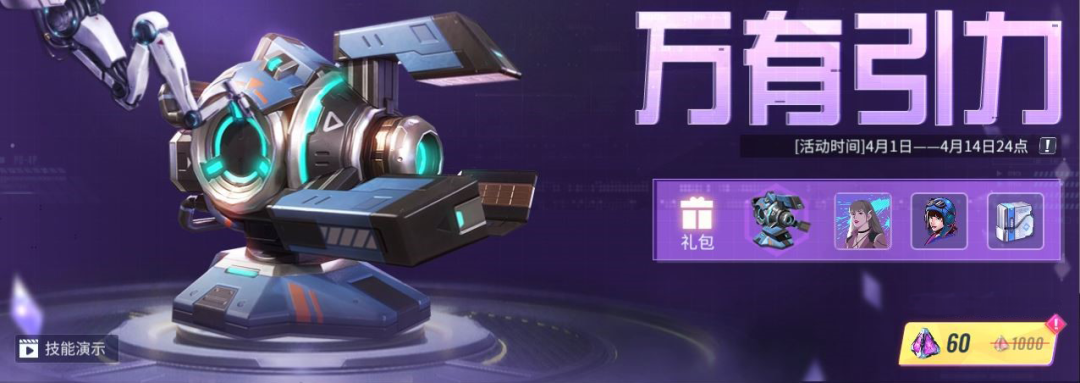 2、限时巨惠:新外观随科技交流应运而生,联动专属电磁陷阱外观“万有引力”,将于活动首周在60晶钻巨惠礼包中出售,礼包中还包含联动头像“蕾拉”、光印“飞行日记”、音乐包“CHILL”。