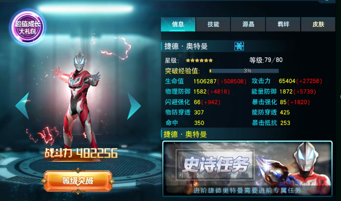 捷德奥特曼虽然是一个能量型英雄,但是捷德奥特曼无论是暴击还是闪避能力都不算太高,但是捷德奥特曼的穿透能力是非常高,可以让捷德奥特曼轻松打出更高的伤害,并且捷德奥特曼的攻击成长非常高,满级之后将会有将近7万的攻击力,这是一个非常恐怖的数字了,很多BOSS甚至连捷德奥特曼一套技能连招都承受不住!