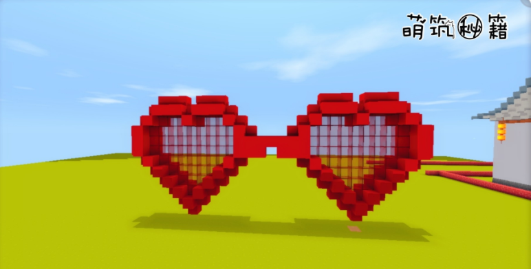 第一步,用红色框出爱心框架,然后在里面用红色玻璃块填补,这样爱心眼镜片。