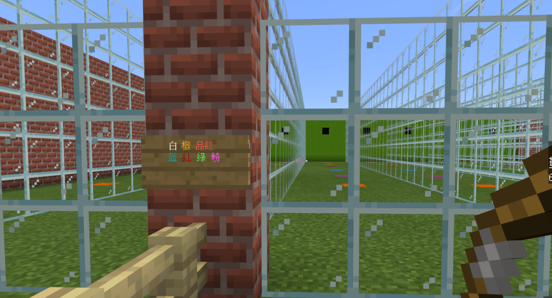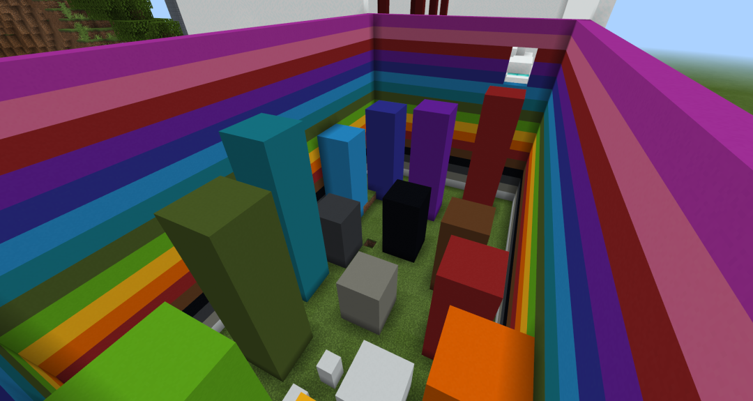 玻璃后面地上的彩色方块