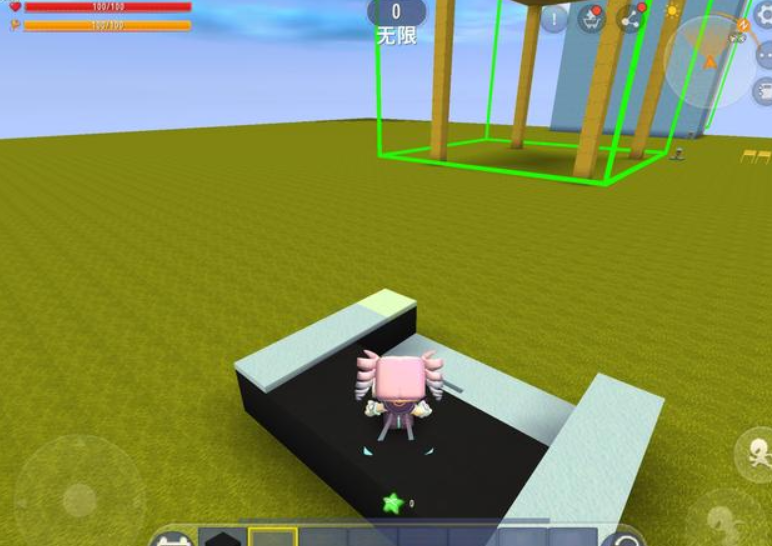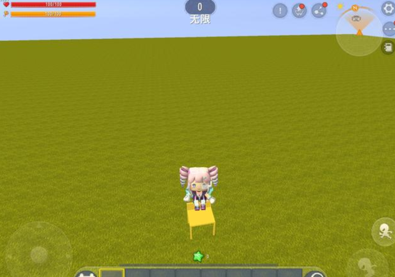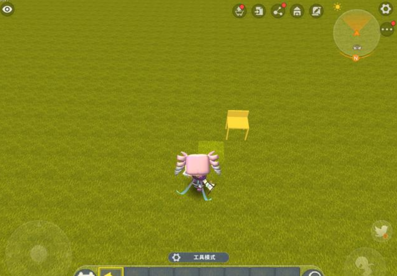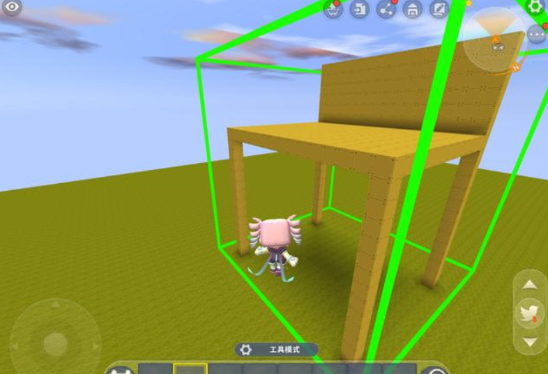 回到地图后,玩家从材料库里找到刚刚创建好的椅子方块,并将它摆放在地面上的任意一个地方。