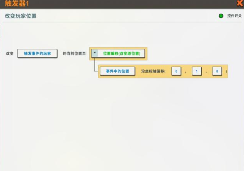 这时玩家就会发现界面中多了一条补充设定,玩家需要在红字的位置部分选择事件中的位置,并将坐标轴偏移数值修改为(0,1,0)即可完成设置。