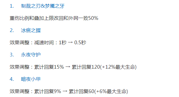 制裁与梦魇的重伤效果回调至正式服配置,即50%的重伤效果。