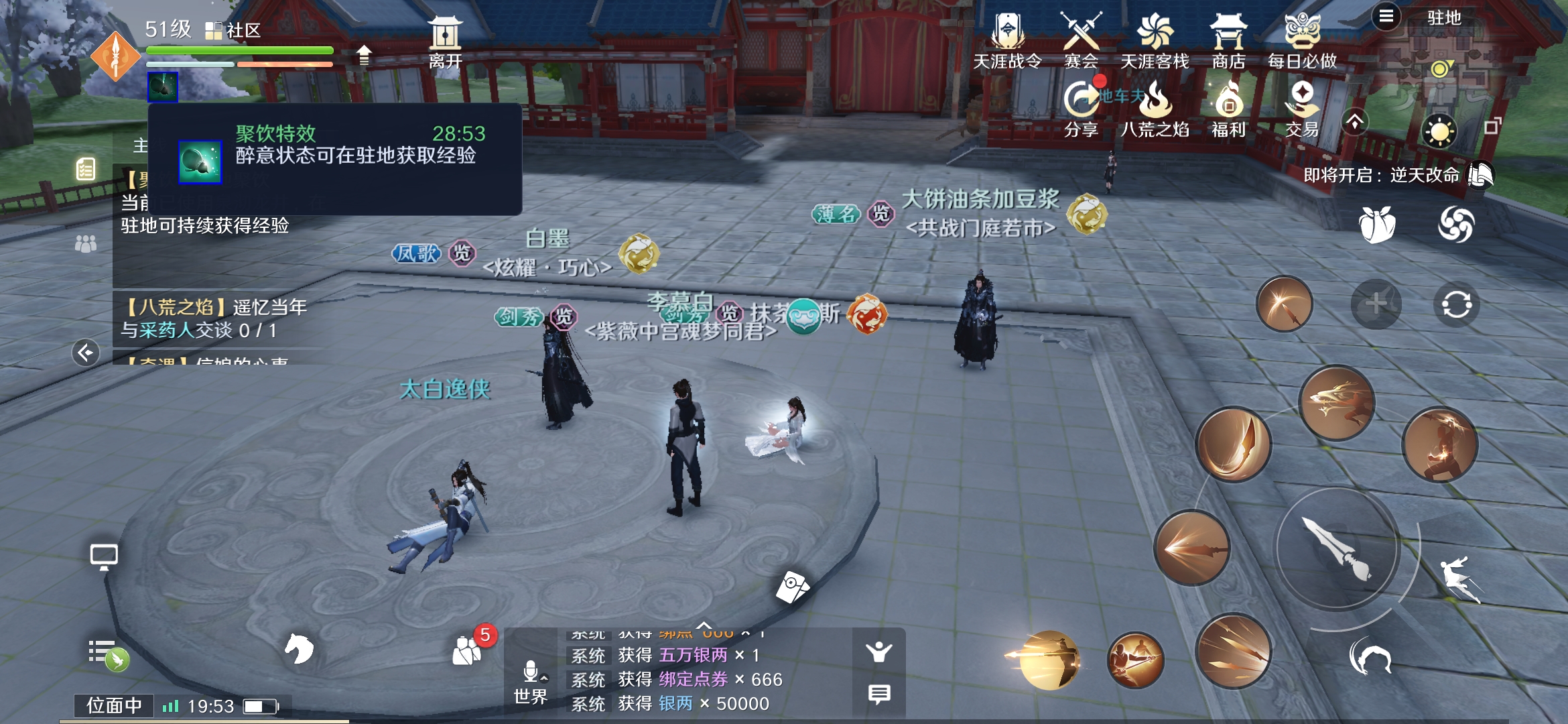 2.帮派聚饮帮派聚饮分为两个阶段:聚饮阶段和玩法阶段聚饮阶段