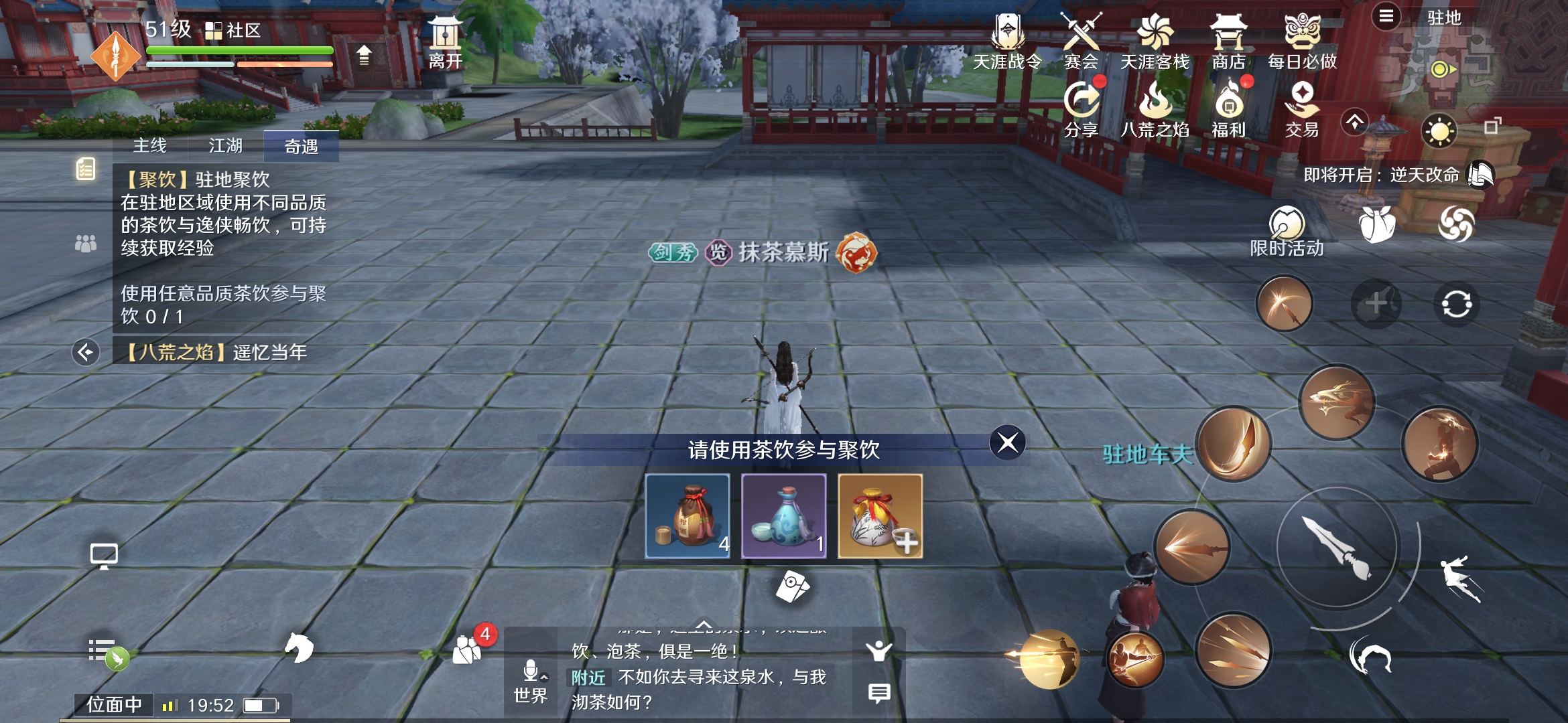 目前的玩法有三种:结同心、聚饮答题、逸侠挑战