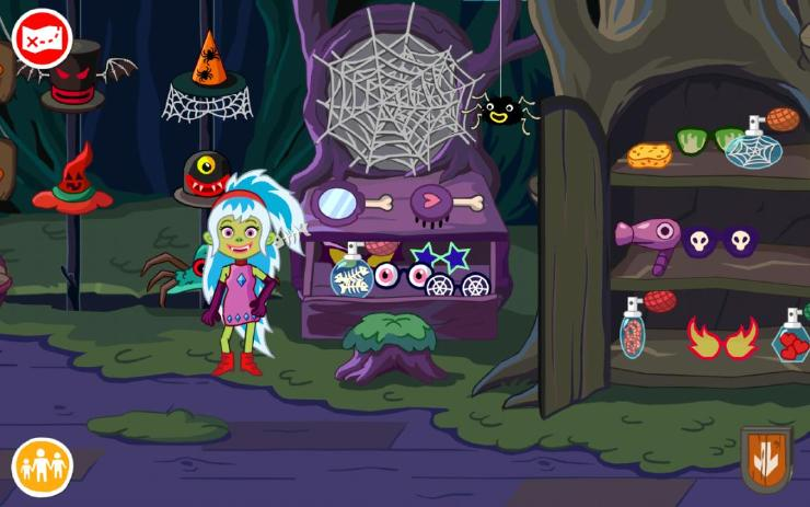制药间右侧就是小女巫的房间啦,她也有各式各样的衣服可以搭配呢。房间中的镜子是一面有魔力的神奇镜子哦,快擦掉镜子上的蜘蛛网,看看会出现什么吧~