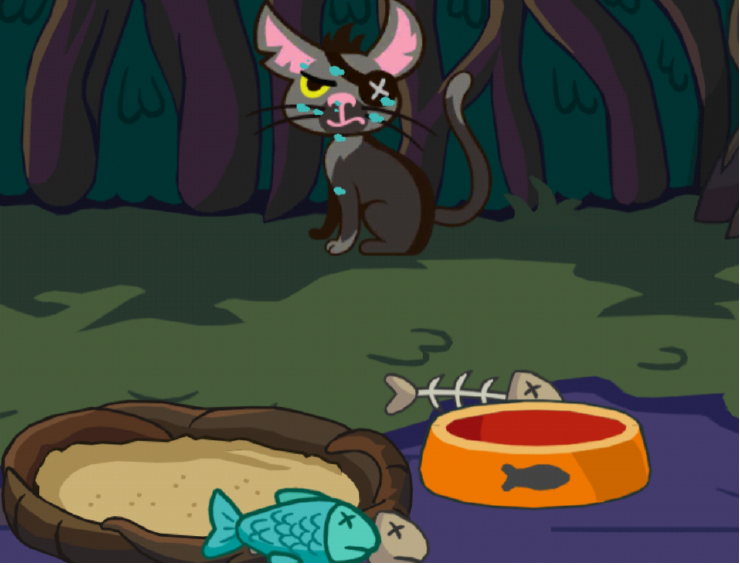 巫师还养了一只小猫咪作为宠物,你可以为小猫咪喂食、陪它玩耍哦!快喂它吃几条它最爱的小鱼干吧!