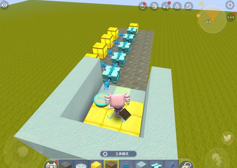 三、速度感应模式的应用 速度感应模式目前主流的有两种用法,一种是将光照感应器安放在载具上,等车辆到达一定的速度让其带动载具上的机械进行工作。另一种在跑酷地图或赛车地图用得比较多,通常都用来给玩家布置陷阱,效果还是很不错的。