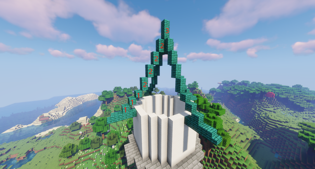 从上一步的第三块诡异木板开始向上搭即可