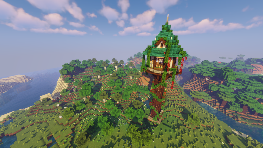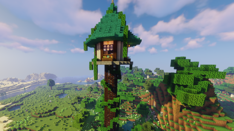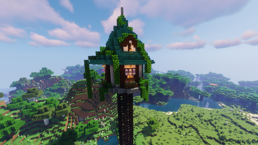 在被绿树鲜花包围的花之魔法师塔里