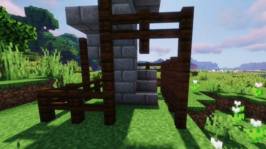 然后用深色橡木栅栏将楼梯包裹