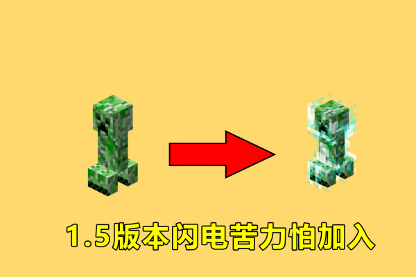 在beta1.5版本中,苦力怕的第二形态:闪电苦力怕加入。此时还没有三叉戟的存在,所以闪电苦力怕只能通过天然闪电形成,导致它成了一个相当稀有的生物。