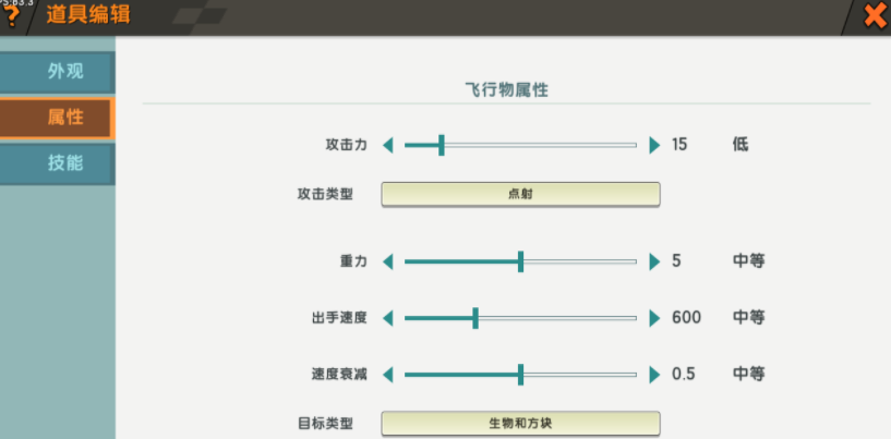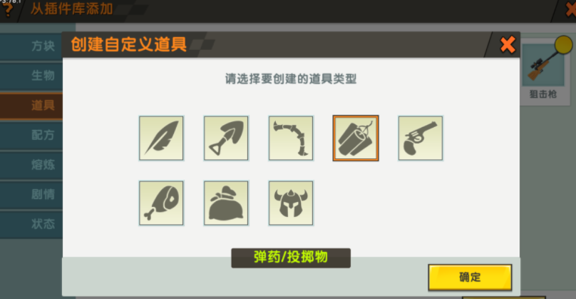 自定义新建道具的类型多达八种,这里选择投掷物即可,接下来就可以自定义编辑道具的属性了!
