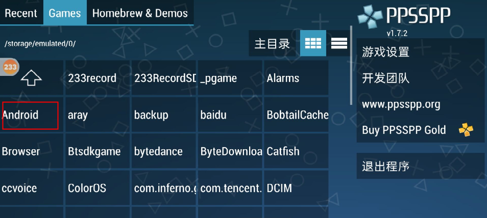 选择其中的org.ppsspp.p即可,没有的话选择com.psp.atm