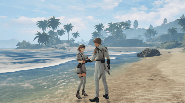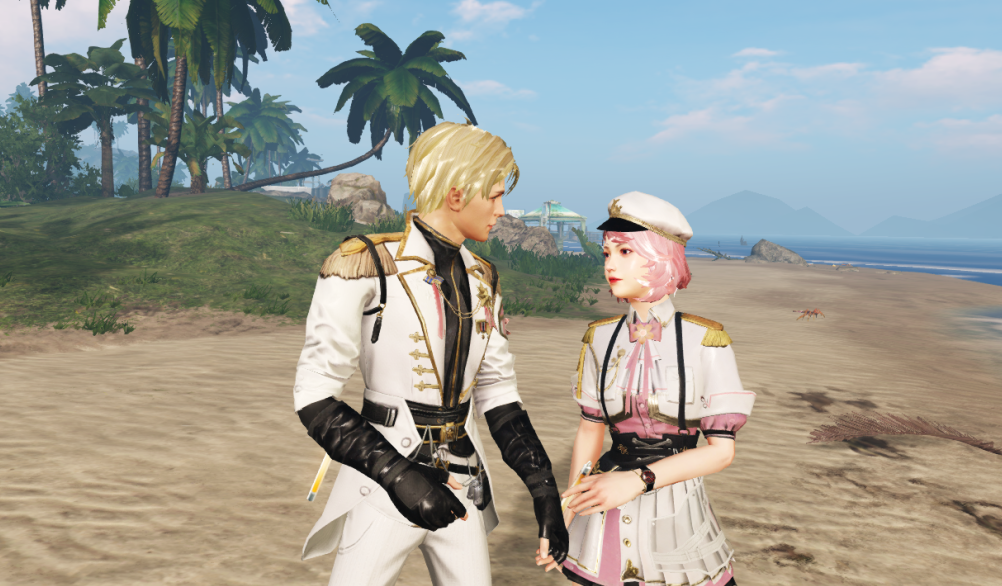 两人一同在海边散步