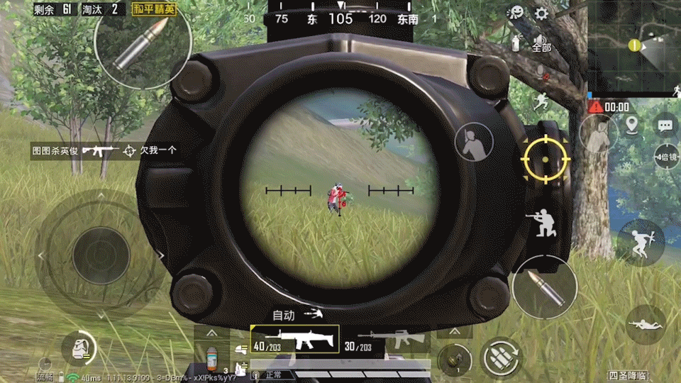 经历了这次战斗之后,鸡仔痛定思痛,决定从此抛弃消音器,毕竟夺冠上分才是鸡仔心里最重要的事情!所以鸡仔拿起了补偿器+垂直+快速扩容的组合,这满配的SCAR-L扫起来不香吗?鸡仔的快乐又回来喽~