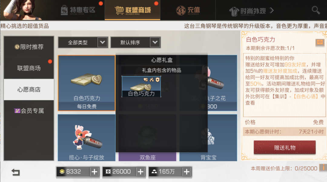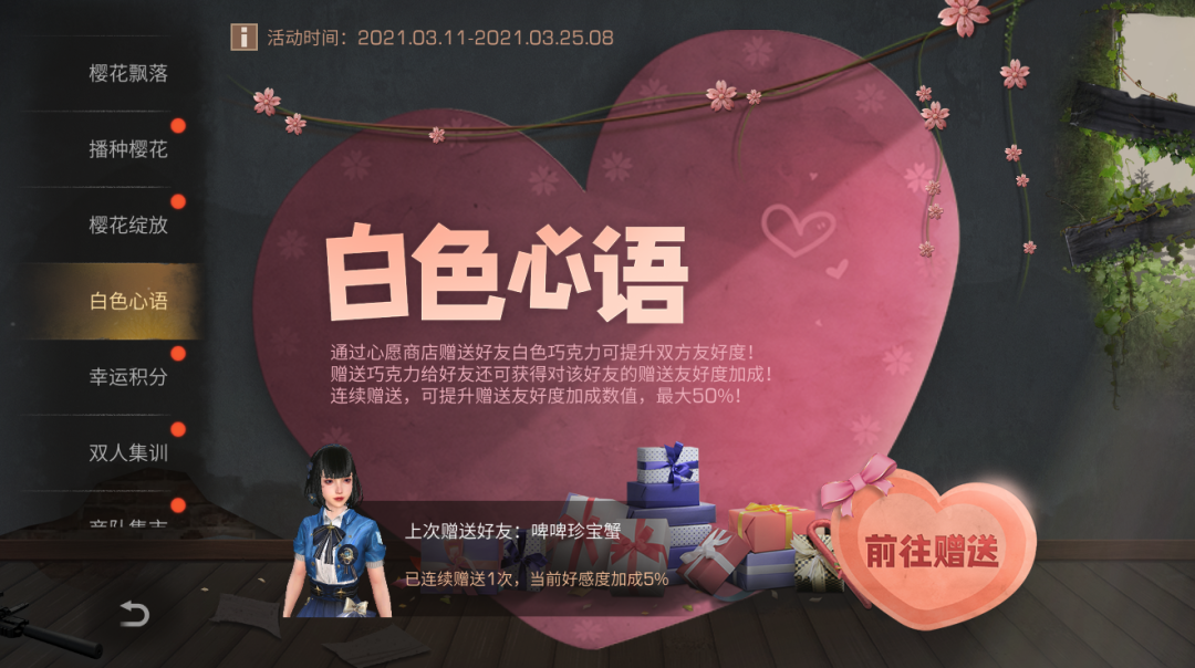 连续对同一好友赠送白色巧克力