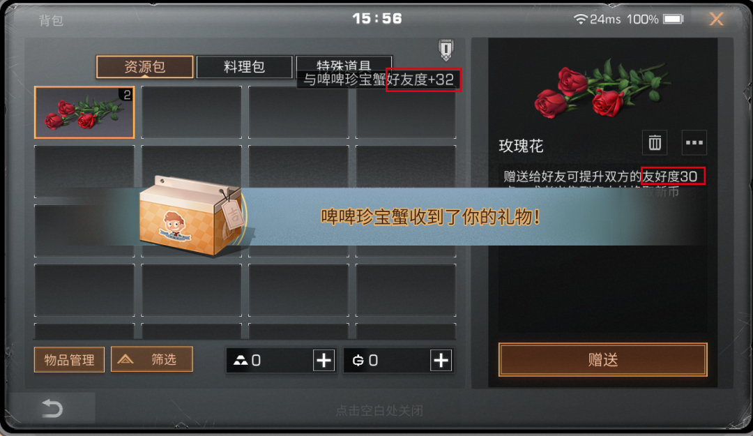 赠送玫瑰花的好友度加成