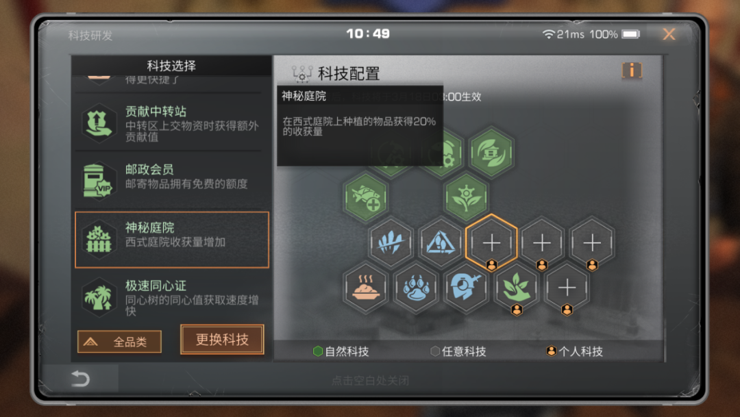 神秘庭院科技也能够获得额外20%的收获量