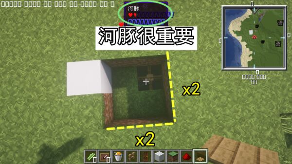 在不说原理之前,先跟大家讲讲如何搭建该款大门,考验一下各位玩家的mc知识基本功是否扎实。首先往自家大门的任意一侧中挖取2x2的坑,并在离门最远一格再挖深一格。