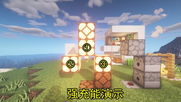 按钮或拉杆,其作为开关的作用,还有着能对附着的方块进行强充能的作用,其次它们本身就是一个强充能方块。强充能:能对周围的方块提供红石能量。