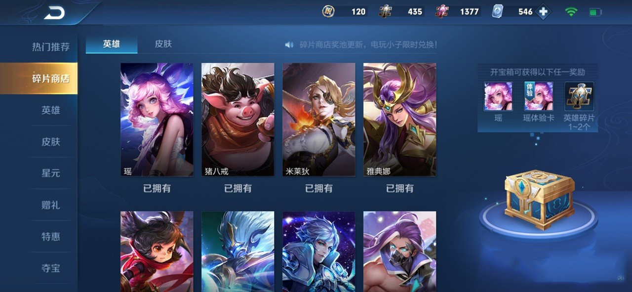 二、接下来的一周内,所有玩家参与对局可以获得金秋纪念宝箱,每日最多掉落三个宝箱,内含五位永久英雄,分别是张良、虞姬、吕布、鲁班大师和李信,当然该宝箱为概率抽取,还包含了这五位英雄的1日体验卡和钻石铭文碎片奖励!