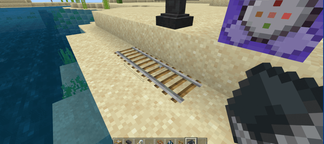 接着在旁边铺一段铁轨