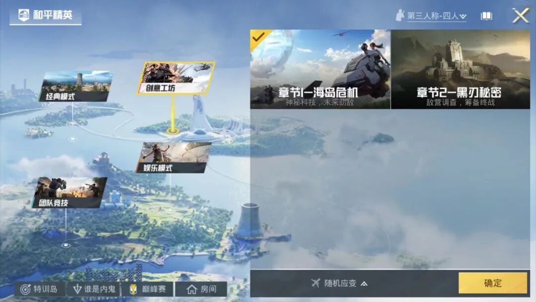 体验服现在有两个新的玩法在创意工坊:章节1—海岛危机、章节2—黑刃秘密