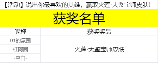 官方在评论抽取3名符合要求的玩家,送出火莲·大鉴宝师皮肤。