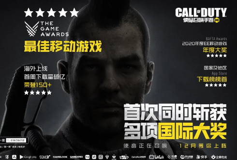 在现阶段FPS游戏品类百花齐放的情况下,CODM首次同时获得THE GAME AWARDS最佳移动游戏、150+国家及地区App Store下载榜榜首、Google Play最受欢迎游戏、Google Play最佳对战游戏、Google Play年度最佳游戏、BAFTA Awards 2020年度EE移动游戏年度大奖等奖项,以强劲的势头开始打造“使命”战场。