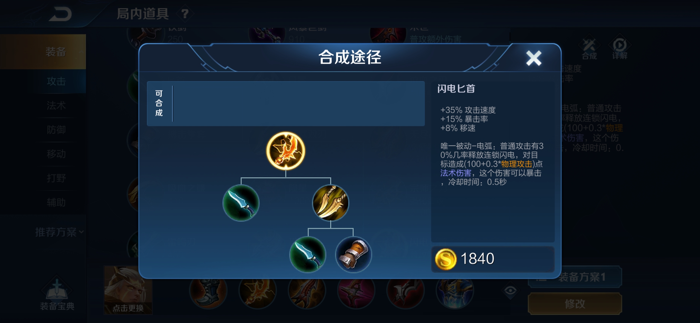 合成速击之枪后,直接出闪电匕首,后羿每次普攻最多能同时射出9支箭矢,也就是说他能轻松触发闪电匕首的被动电弧。要知道,前期是战坦的强势阶段,后羿有了闪电匕首后,能轻松克制敌方战坦。