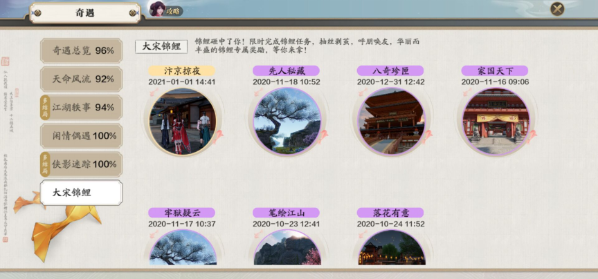 另外需要注意的一点是,捕快疑案寻踪中的先人秘藏和牢狱疑云奖励不会在捕快断案中显示,因为这两个按键为紫色锦鲤奇遇,奖励均为500绑点。