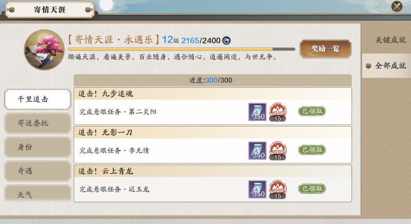 寄送委托当然是为镖师准备的专属成就,根据寄送目标的不同,有绑点或碎银奖励。