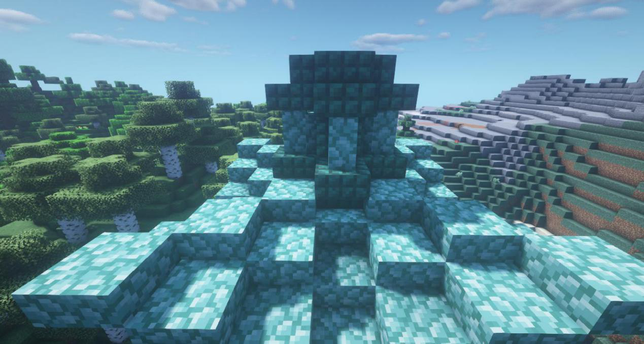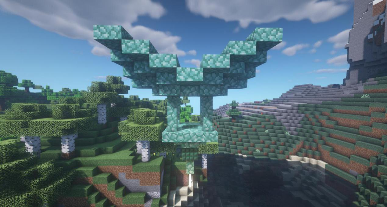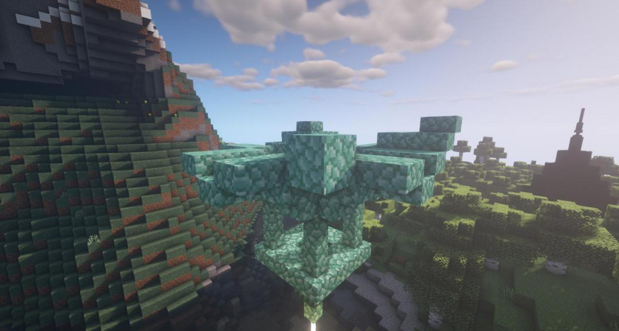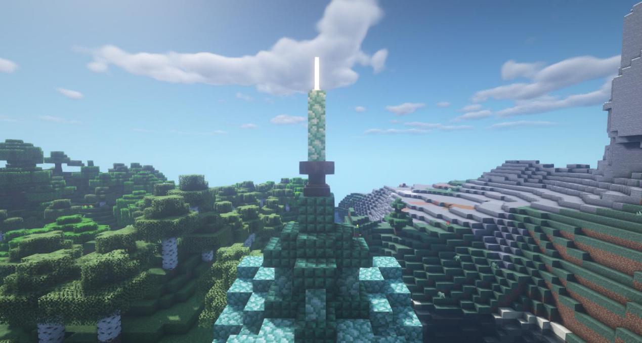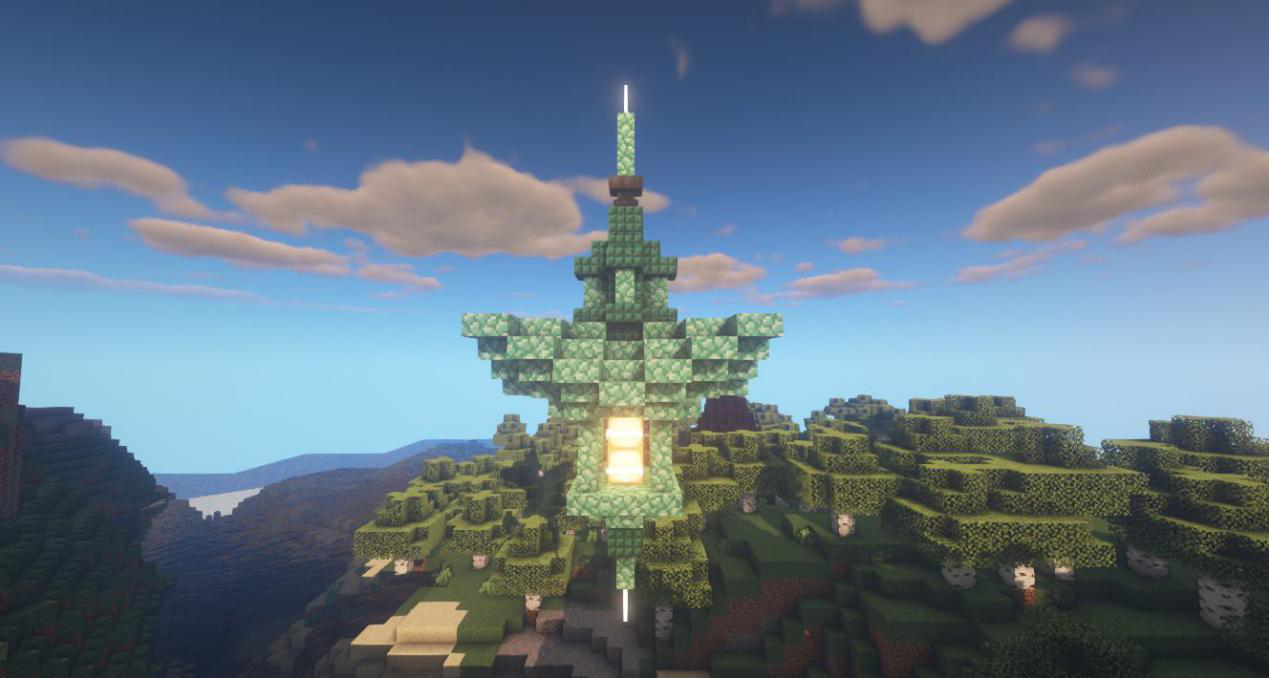 接下来做出天灯尖端,中间放上海晶灯和末地烛就完成啦!是不是很简单呢,冒险家们快去试试吧~我们下期再见啦~