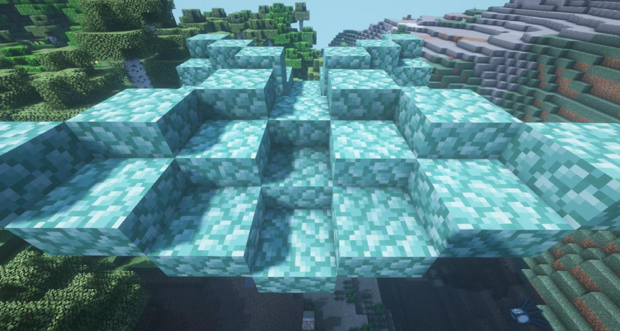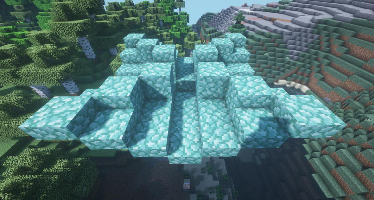 最后按照如图位置,于两个台阶上方再放上一个海晶石台阶~