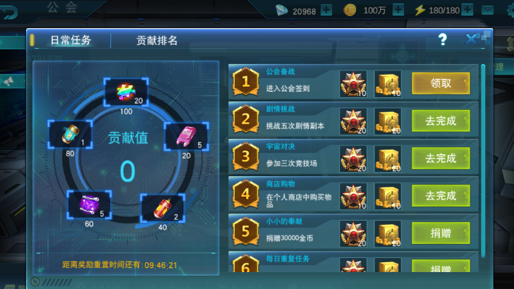 日常任务是本次公会玩法的一个核心玩法,小伙伴们可以通过完成公会的日常任务获取到非常丰富的贡献奖励,并且公会的日常任务也非常简单,任务基本都是小伙伴每天都要做的,日常任务的奖励分为5个档次,随着档次的提升,奖励也会变得更丰富,日常任务的主要奖励有万能碎片、体力药剂、奥特核心等。