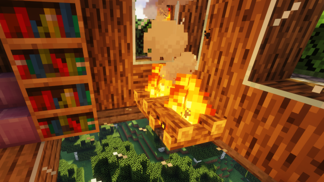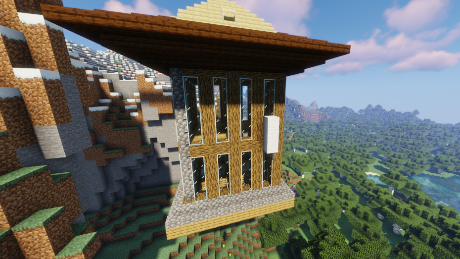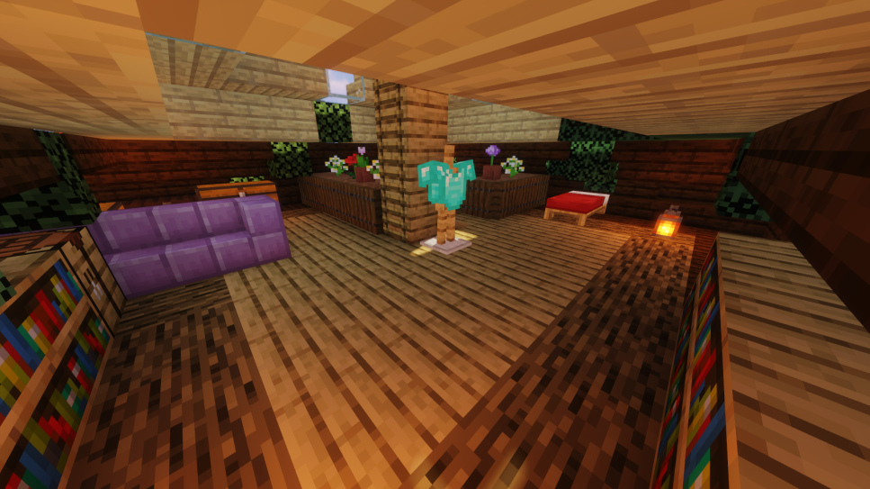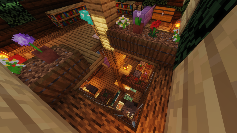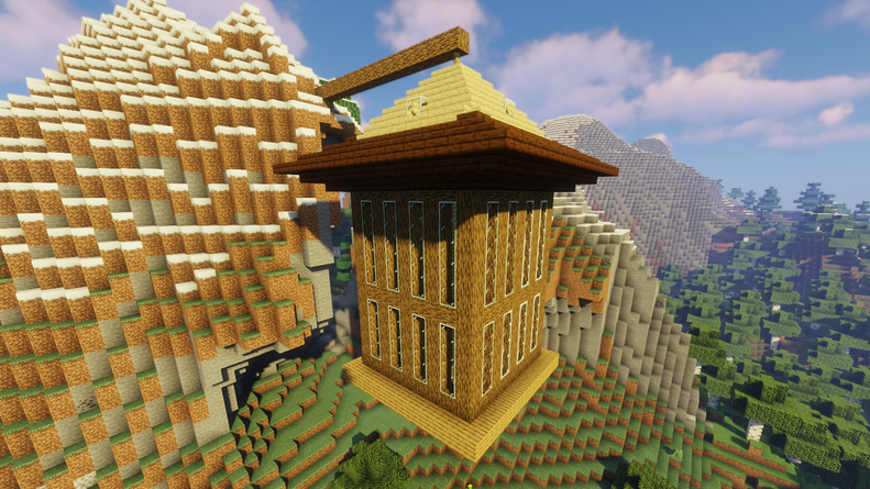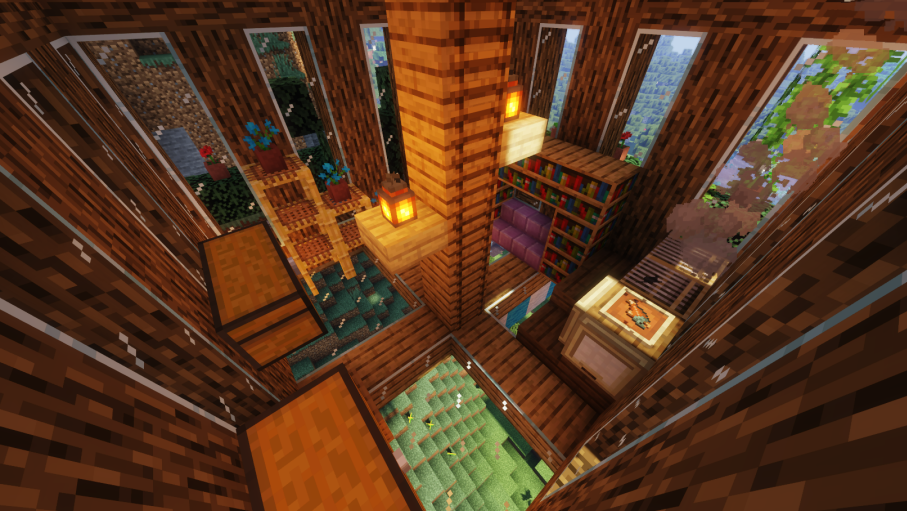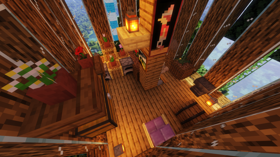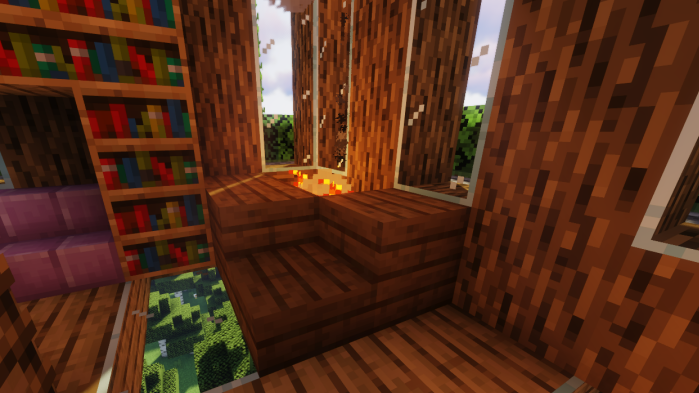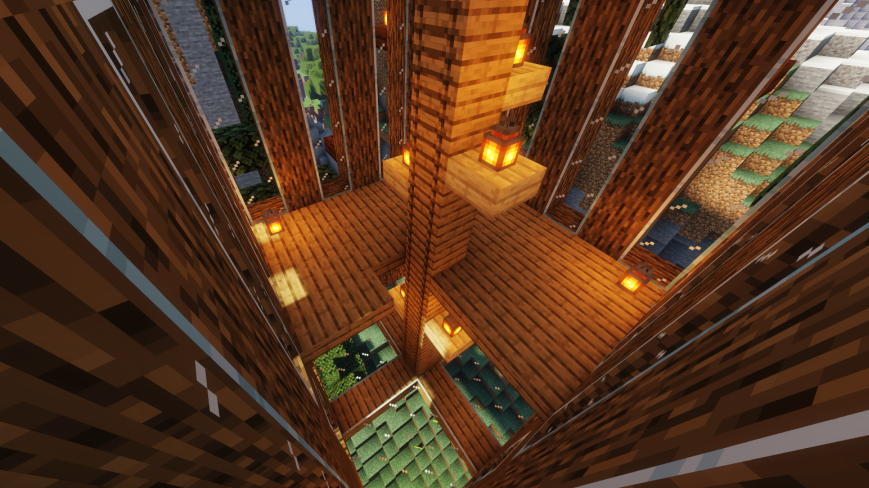 然后用深色橡木台阶把剩下的屋顶填满